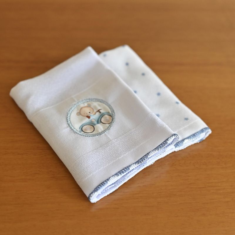 Utilizado para limpar a boca do bebê durante a alimentação, para proteger a roupa do bebê de respingos e sujeira, ou para secar o rosto do bebê após a mamada.