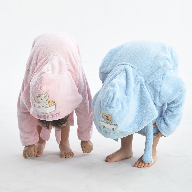 O roupão infantil é uma peça que pode ser usada em diversas situações, como na praia ou na piscina. Feito de tecido absorvente e leve, o roupão infantil é ideal para envolver as crianças após um mergulho, mantendo-as aquecidas e secas. Além disso, o roupão pode ser usado para proteger do sol enquanto as crianças brincam na praia ou à beira da piscina.Os roupões são estampados e com capuz, confeccionados em tecido felpa aveludada 100% algodão, garantindo excelente absorção, toque suave e carinhoso à pele do bebê. Possuem cinto costurado nas laterais, para melhor ajuste na amarração. As estampas são alegres e divertidas. As crianças vão adorar!