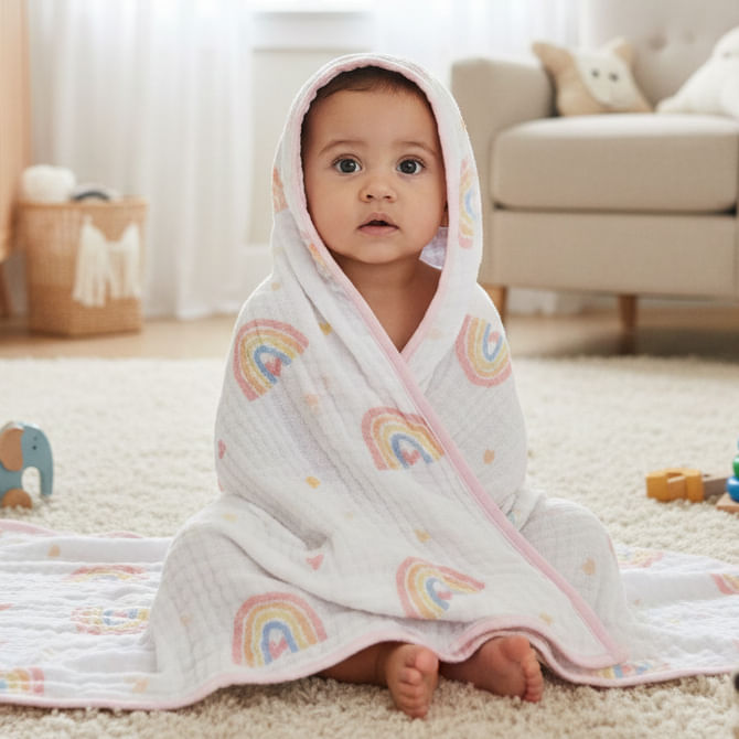 É versátil e pode ser utilizada em diversas ocasiões, como após o banho do bebê, na saída da piscina ou da praia, garantindo o máximo de cuidado e conforto em todos os momentos.